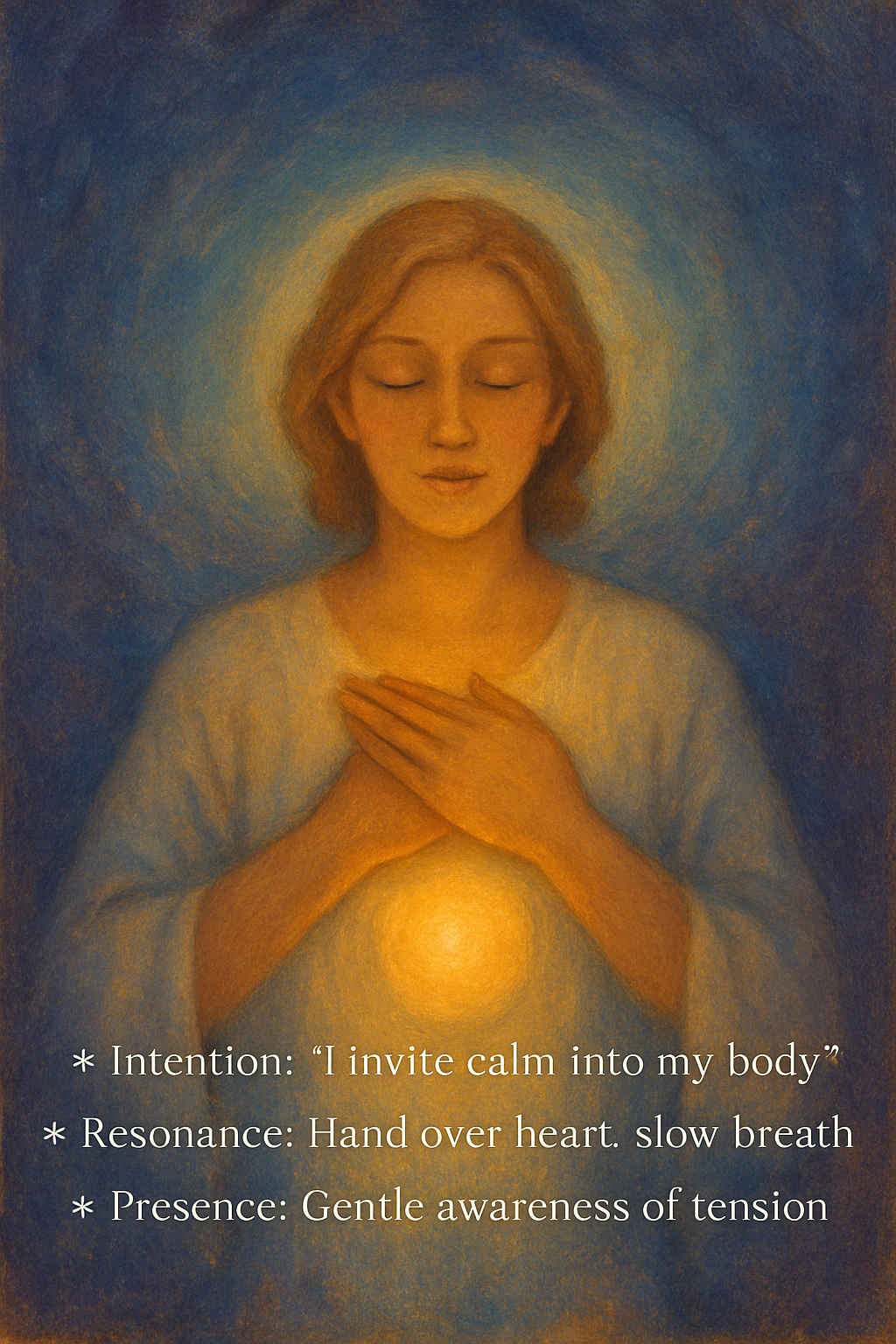 Heart & Connection (5 min): Coherence breath 5/5 + 528 Hz or gentle singing; recall one moment of gratitude.